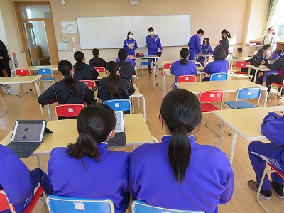後期生徒会の締めくくりとして「生徒議会」を開催し、9月に生徒会で見直しをした「タブレット使用ルール」について、現状の確認とルールの見直しを進めています。今年度始めから導入されたタブレット端末の使用に伴い、生徒会に新たに求められた、そして欠かすことのできない重要な活動として定着しつつあるこの取組を通じて、「学校生活、社会、そして何より自分自身の生活は、自分自身が参加してつくる」と子どもたちが実感する機会にしてほしいと願います。