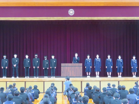先週土曜日には、特設駅伝部の子たちが、「海部地区駅伝大会」に臨みました。大会に先立って、先週月曜の朝礼で行われた「壮行会」では、全校の仲間や校長先生から激励を受けました。