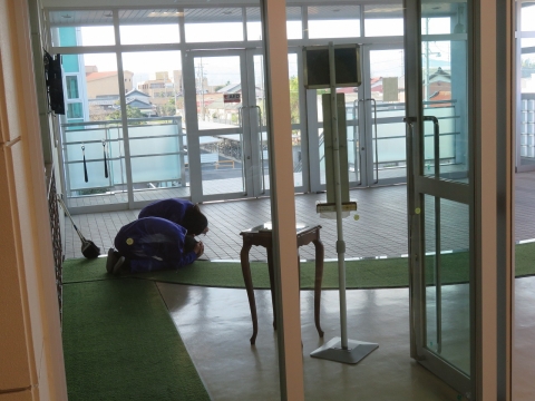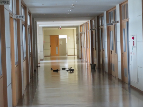 今回は清掃の時間中に「緊急地震速報」が鳴り、同時に給食室から出火という状況が予告なしで起こるという場面でした。