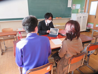 今回の懇談は、私立高校・専修学校の受験校を決めることを主なねらいとして、担任・保護者・生徒の三者で、生徒の思いに寄り添うことを大切にしながら話をしました。