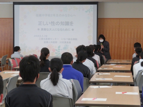 講師には、昨年度に引き続き川村真奈美先生(いなべ総合病院産婦人科医)にお越しいただき、「正しい性の知識を ~素敵な大人になるために~」というテーマでお話をしていただきました。
