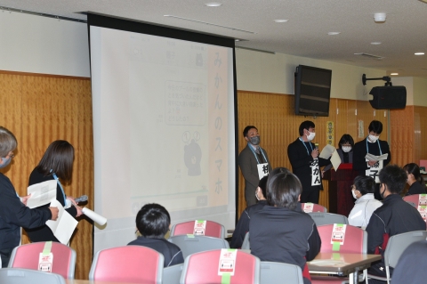 授業の途中では、保護者の皆様にも参加をしていただいたり、事前に準備をしていた先生たちによる「寸劇」も盛り込んだりして、生徒も多面的・多角的に考える機会となっていました。