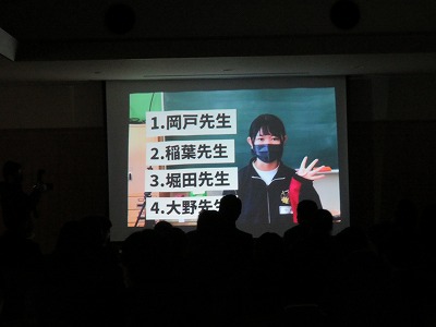 後期生徒会執行部の子たちが、「先生クイズ」を考えてくれました。会場では、各問題の答えを予想して、みんなで盛り上がりました。