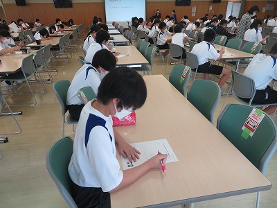 先週金曜日の6時間目には、1年生の総合的な学習の時間を使って養護教諭が「心の授業」をしました。