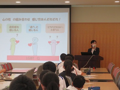 授業の後半では、「多様な性」や「LGBTQ」などのワードが盛り込まれていましたが、今回の授業は「ダイバーシティを尊重した学校づくり」のまさに「導入」ともいえる授業でした。これから3年かけて少しずつ「多様性を尊重する」心情を育むことで、いろいろな考えの仲間同士が互いを尊重し合って過ごす学校へと、この1年生の子たちがどんどん高めていってくれることを楽しみにしています。
