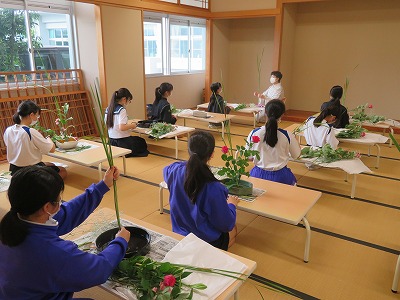 運動部の皆さんの大会が先週末から始まりましたが、校内では「茶華道クラブ」の活動も始まっています。緊急事態宣言の発令により時期が遅くなってしまいましたが、先週の水曜日に、講師の先生をお招きして今年度初の活動が行われました。
