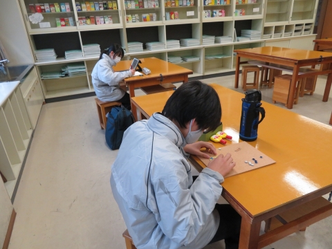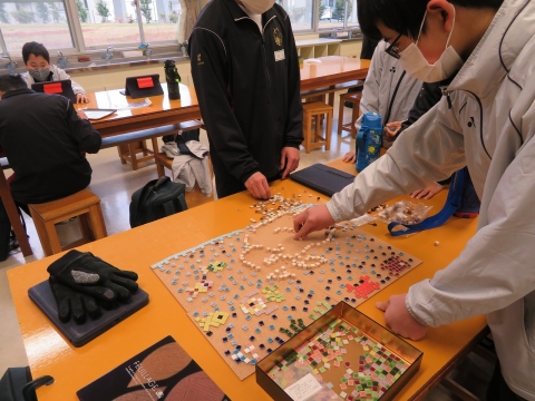 創作部では、「モザイクアート」の製作に取り組んでいました。たくさんの「タイル」を「こっちがいいんじゃない?」と仲間同士で相談しながら制作する2年生、個々に分かれて自分なりの「こだわり」があるテーマで制作に取り組む1年生と、学年での違いも見られて興味深かったです。