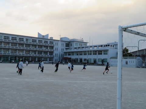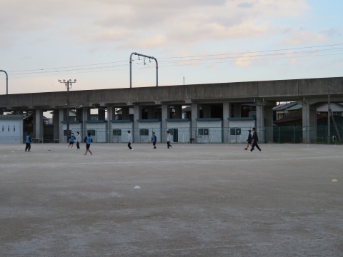 サッカー部は、「5対5」の練習をしていました。今の練習の課題は「DFのポジショニングを高めること」ということで、攻撃の状況に応じて声を掛け合って連携を確認する様子にも、最近少しずつレベルアップが実感できているそうです。