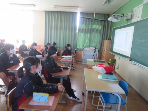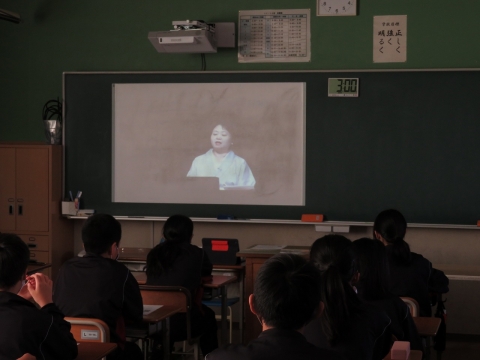 昨日の3時間目に、1年生が総合的な学習の時間を使ってオンラインで「講演会」を視聴しました。この授業は、同じ日時に津島市文化会館で開催された奥山景布子氏による講演会を、「ハイブリッド型」として津島市・愛西市の全小中学校と6高校にライブ配信されたものを視聴することで実現をしました。