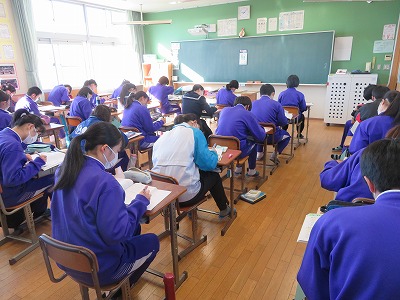火曜日から昨日まで、私立高校一般入試に出かけていた3年生の教室を月曜にのぞくと、まさにピリピリしていました。どの子も自分の目標に向かって最後まで努力を重ねる雰囲気は、まさに「鬼」の形相といわんばかりの緊張感でした。