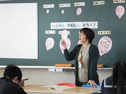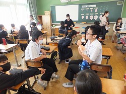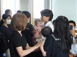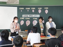 今日は市の保健士さんの協力をいただき、絶賛子育て中のお母様3名をお招きし、2年A・B組で「いのちの授業」を行いました。養護教諭や保健士さんのお話から新しい命が生まれることの不思議さを学んだり、お母様方から子育ての大変さや幸せを聞いたりしました。本年度は実際に赤ちゃんを抱っこさせていただくことができ、いのちの尊さを体で感じることができました。来週はC組で実施します。