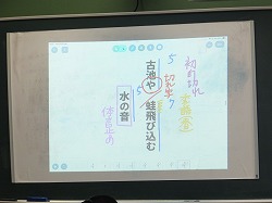 クラスのみんなは、楽しみながらも真剣に俳句づくりに取り組んでいました。中には「おっ」と思わせる名句も見られました。お互いの俳句を見て感想を交換したり、気付いたことを振り返ったりすることで、より俳句の面白さを感じ取ってたようです。