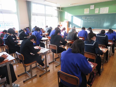 今日は、1・2時間目に3年生の「学年末テスト」がありました。