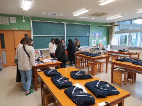 開会前には会場に隣接する美術室を使って、本校PTAの皆さんが「制服バンク販売」を実施してくださいました。多くの方に活用していただくことができたようで有難く思います。