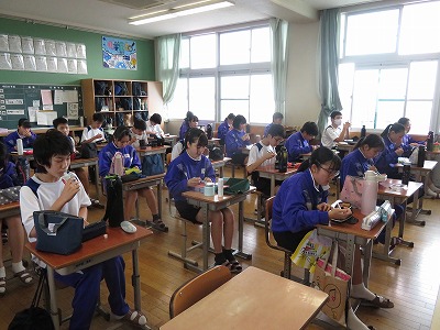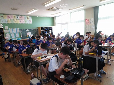 先週と今週に2・3学年が、それぞれお昼に「お弁当」を食べました。2年生はデイキャンプ、3年生は修学旅行が再度延期になったため、2年生は先週金曜日に1日、3年生は今週月曜から水曜まで3日間(今年度、合計すると10回)、わざわざお弁当を用意をしていただくことになりました。