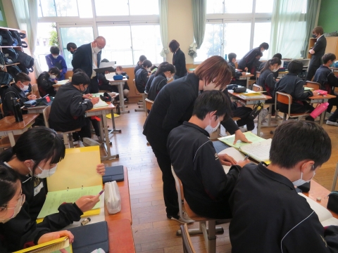 その後は、2・3時間目の授業を参観していただき、実際に生徒や先生の様子を見ていただきました。どの授業も一生懸命生き生きと、しかも和やかな雰囲気でみんなが活動する様子に、普段からの積み重ねを感じてもらうことができました。