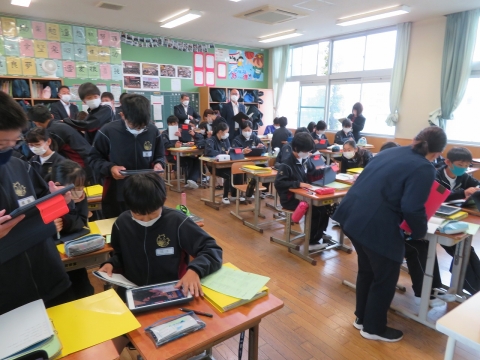今回参観していただいた方から、たくさんの話し合い活動、ワークショップ型の授業、タブレット端末の効果的な活用が盛んな様子を見て、「普段から(こういったことを)積み重ねていないと、こんな風にはできないですね」と、日ごろのみんなのがんばりに思いを馳せたお言葉をいただくことができました。