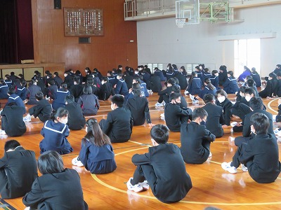この日は校長先生が不在だったため、私から「幸せの3つのタネ」について話がありました。年度末には、このタネがしっかり成長して、大きな花がたくさん咲くことを期待しています。