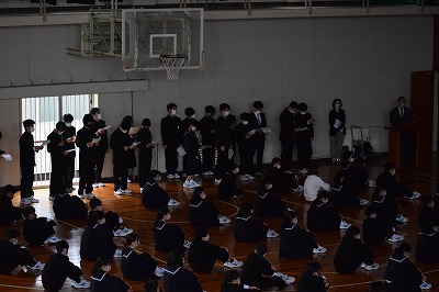 生徒指導担当の先生からは、新1年生の朝礼に臨む様子や、先輩たちの聴く態度について、早速お褒めの言葉がありました。