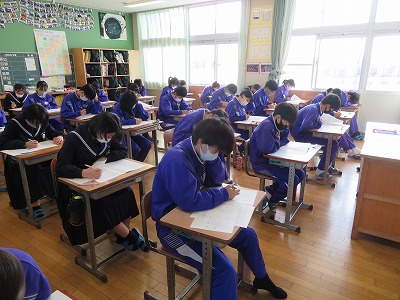 3年生は、先週火曜の1時間目から5時間目を使って、「学力診断テスト」に取り組みました。