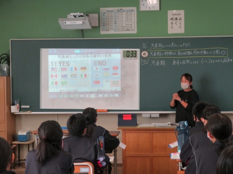 そして最後となる3回目の授業では、「思春期」に起こる心の変化や成熟について学ぶとともに、性的マイノリティについて知ることを通じて、多様性を認め合う大切さについて考えました。