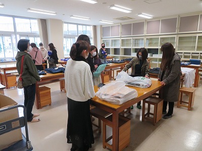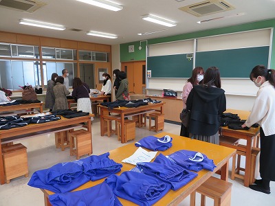 授業参観に先立って、昼放課の時間に「PTA制服バンク販売」が行われました。PTA役員・理事の方が今年度最後の活動にご尽力くださいました。