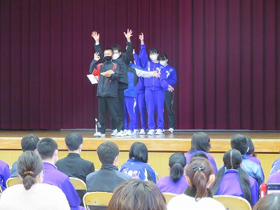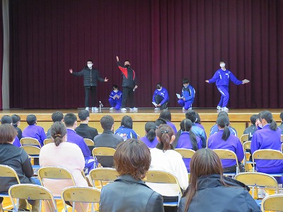 2年生は、体育館で「群読発表」を行いました。茨城のり子さんの「鍵」という詩を、グループごとに表現を工夫しながら発表しました。