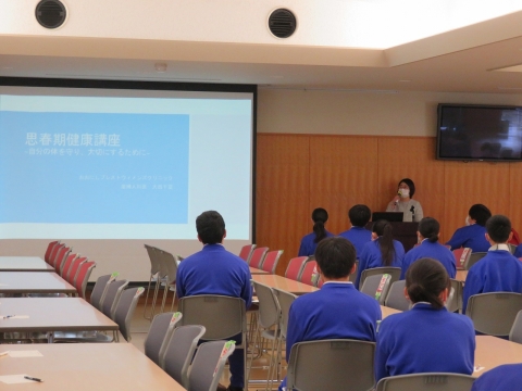 今日の2時間目には、一宮で産婦人科を開設されている大西先生をお招きして、3年生を対象に「思春期講座」を実施しました。「思春期講座」については2年時にも三重県から産婦人科の先生にお越しをいただき、「学校保健委員会と共催」という形で保護者の皆様にも参観していただきながら実施をしましたが、今回はその講座の続き、さらには中学校生活最後の「からだ」や「心」について学ぶ機会として実施をしました。