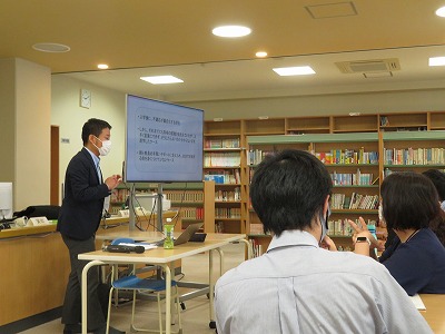 この研修は、もともと本校の教員だけでなく、北河田小学校と勝幡小学校の先生方にもお越しいただいて、学区の小中学校の連携や共通理解を深めることを目的に企画しましたが、新型コロナウイルスのまん延拡大により、残念ながら二つの小学校をオンラインで結んで、それぞれの学校から実施することとなりました。