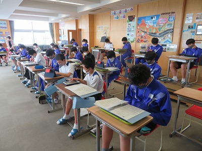 そんな中でも、子どもたちは普段の学校生活を安全に気を付けながら継続し、できる範囲で精いっぱい学びを深めています。例えば3年生の音楽では、今年度の学校祭で行う予定の「合唱コンクール」の曲をクラスで決めました。