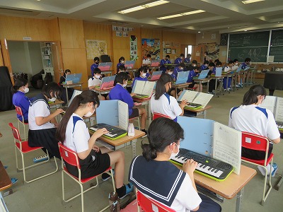 さらに、授業の残り5分程度でしたが、曲の冒頭部分を電子キーボードで演奏しました。ほんの2~3小節の演奏でしたが、嬉しそうに、そして真剣に弾く様子に、早くも「勝負」が始まっていることを感じました。