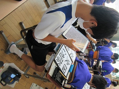 3年生の授業では、昨年度までの「習字」の授業から進化して、タブレット端末を活用した内容になっていました。