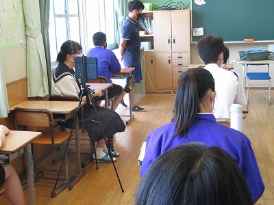 さらに、緊急事態宣言が出ているコロナ禍の中、安心・安全を確保するために、今週月曜日に予定されていた「全校朝礼」も、放送で実施をしました。今回の放送朝礼では、夏休みに行われた中総体西尾張大会で3位になったテニス部(団体)、さらに吹奏楽コンクール西尾張大会で金賞、県大会で銀賞を受賞した吹奏楽部について、表彰の披露と、校長先生からのお話がありました。
