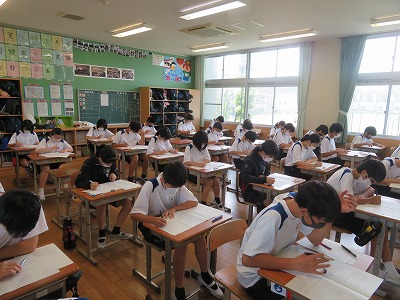 今年度から各教科では「単元テスト」を授業の中で確実に実施をした上で、この「復習テスト」に臨むようにしたため、子どもたちは「いつもいつも何かテストがあるなぁ」と感じているかもしれませんが(実際に「心のアンケート」にも、そういった入力があります)、これまで定期テストに頼っていた復習の機会を多くすることで、より確実な学力の定着がすすむことを期待しています。