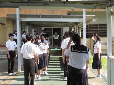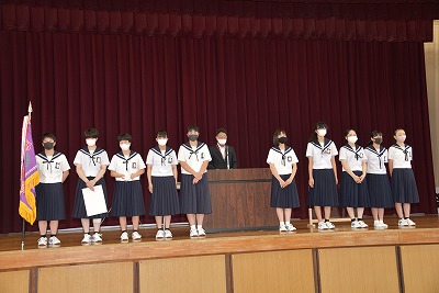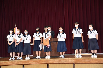 まずは、先日行われた「海部地区中学校総合体育大会」などの伝達表彰を行い、各部の健闘を称え合いました。