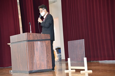 校長先生から、夏休みを迎えるにあったてお話がありました。その中で、先日愛西工科高校からいただいたパーテーションの紹介がありました。