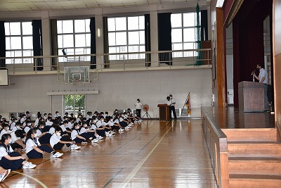 明日から夏休みを迎える今日は、最初に「全校朝礼」を行いました。
