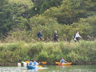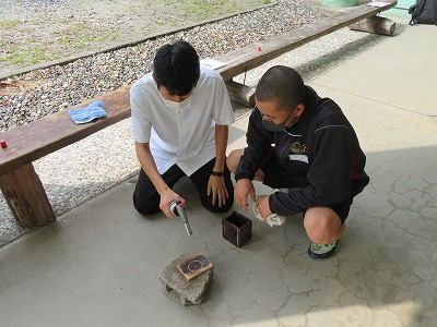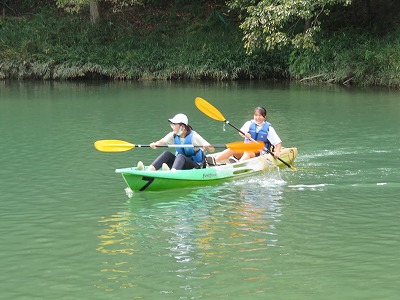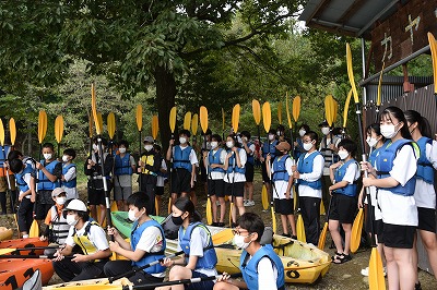 午前中はグループに分かれて【カヤック】【オリエンテーリング】【焼杉づくり】の3つの体験活動に、順に取り組みました。ちなみにグループ活動中には、野生の猿も姿を見せ、改めて普段とは違う自然豊かな場所に来たことを実感しました。