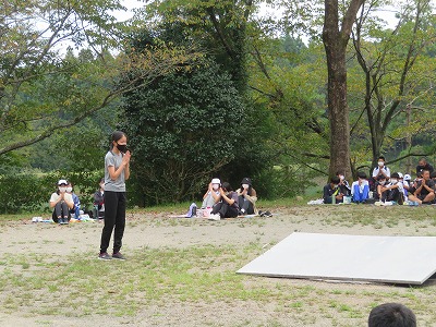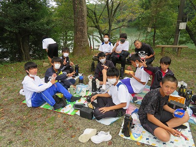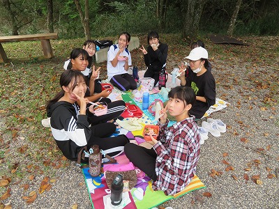 午前の活動に全力で取り組んだ後に食べる「お弁当」は、いつも以上においしかったようで、たくさんの笑顔が見られました。さらに昼食後は、H先生プロデュースの「学年レクリエーション」で盛り上がり、締めくくりは学年みんなで「集合写真」を撮影しました。