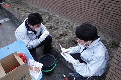 来年の4月にきれいな花が咲くように、さおり学級のみんなでチューリップの球根を植えました。北側の通用門2か所の花壇です。