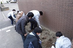 新しい佐織中学校のスタートをきれいに彩るために、冬の寒さを耐えてチューリップは土の中で春を待ちます。
