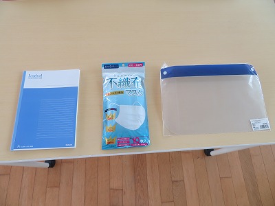 先日、愛西市の全小中学校の児童生徒を対象に、株式会社リーマン様より「マスク」「B5ノート」「フェイスシールド」のご寄付いただき、本校でも1・3年生は先週金曜日、2年生は本日、生徒に配付をしました。