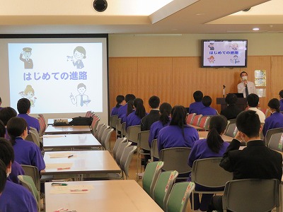 先週の金曜日には、3年生が学年全体で「進路学習」を行いました。「はじめての進路」というタイトルから始まった授業では、今後の進路実現に向けての心構えや考え方、また基本的な流れ等について、「進路」に向けて気合の入っている3年生の子たちが少しリラックスできる雰囲気も作りながら学習しました。