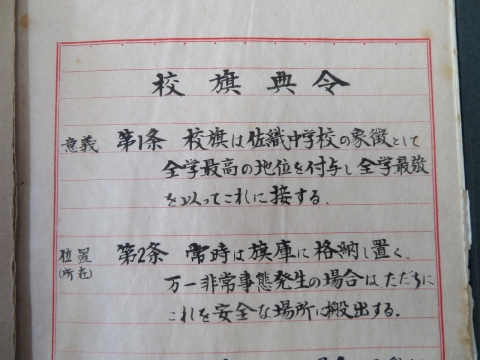 佐織中学校に代々伝わるこの「旗手」という役割については、「旗手典礼」というものが保管されていて、そこに細かな決まりや、代々「旗手」を務めた方の氏名が記載されていて、その「典礼」からは確かに「伝統」が実感できます。