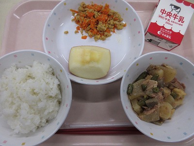 今日は、今月の「かみかみ献立」です。噛み応えのある食材は、キムタク丼のつぼ漬け、和え物の大豆もやしです。しっかり噛むことは、食べ過ぎを防いで消化吸収をよくするだけではありません。噛むことは、脳が活性化して、集中力や記憶力をアップしたり、リラックス効果やストレスを軽減する効果があります。噛み応えのあるものを積極的に取り入れることに加え、1日3食しっかり食べることが大切です。また、あまりに少食にも注意が必要です。体の栄養が不足するだけでなく、メンタル面での噛む効果も軽減してしまいます。早寝!早起き!噛み噛み朝ごはん!