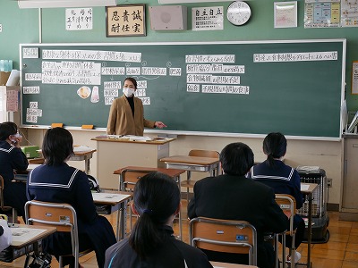 本年度最後の授業参観が行われました。学年のまとめの時期でもあります。生徒の皆さんはしっかりと授業に取り組んでいました。保護者の皆さまにはお忙しい中をご来校いただきありがとうございました。