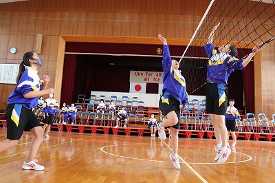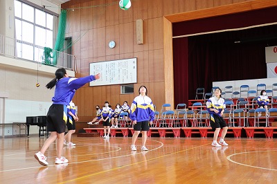 その後、体育館に全員集合し、長縄を使って8の字とびなどを行いました。