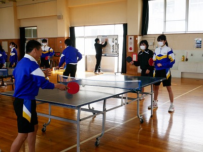 はじめにバレーボールと卓球に分かれて、球技を競いました。