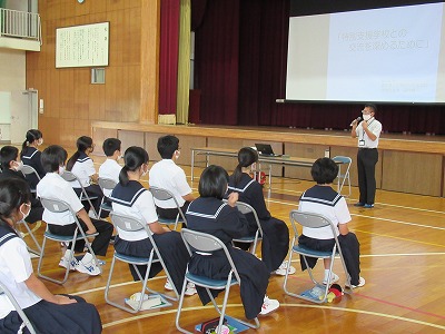 本校には2つの小学校から新入生を迎えます。その新入生を中学校に招き、生徒会を中心に西中での中学校生活についての説明会を行いました。授業の様子や自転車通学のルールなどを分かりやすく教えてくれました。