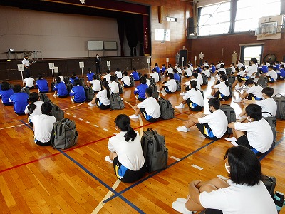 本校には2つの小学校から新入生を迎えます。その新入生を中学校に招き、生徒会を中心に西中での中学校生活についての説明会を行いました。授業の様子や自転車通学のルールなどを分かりやすく教えてくれました。